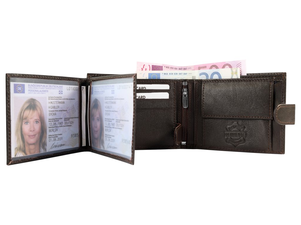 Tato peněženka je vyrobena z pravé přírodní kůže a díky tomu má nejen luxusní vzhled, ale také řadu dalších užitečných vlastností. Pokud se o koženou peněženku budete dobře starat, odmění se Vám mnoha lety věrné služby. Kůže je velice odolný materiál, který má dobrou jak odolnost proti otěru, tak i v tahu. Kožené výrobky se nedrolí, jsou přirozeně voděodolné. Netrhají se a ani nekřehnou. Přírodní kůže se může snadno barvit i lakovat a díky tomu je na výběr v mnoha zajímavých provedeních. Kůže má přirozenou texturu, která je lehce odlišná u každého výrobku. Jedná se o jeden z poznávacích znaků pravé přírodní kůže. K výrobě peněženek se používá hovězí, ovčí či kozí kůže. Specialitkou je také bůvolí kůže, která je už ovšem výrazně dražší.