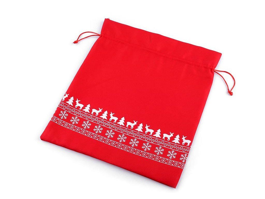 Velký pytlík s vánočními motivy, stahuje se pomocí saténových šňůrek. Z našeho sortimentu do něj můžete vložit i více kusů v krabičkách či větší množství kusů bez krabiček. Případně lze využít i na jeden větší kus. Můžete jej použít na dárky nebo naplnit mikulášskou či vánoční nadílkou. Dá se také naaranžovat jako vánoční dekorace....